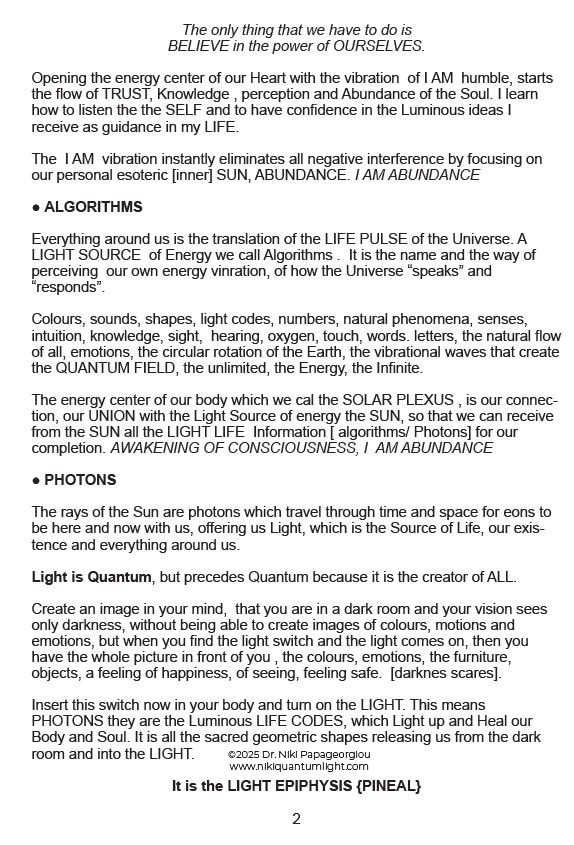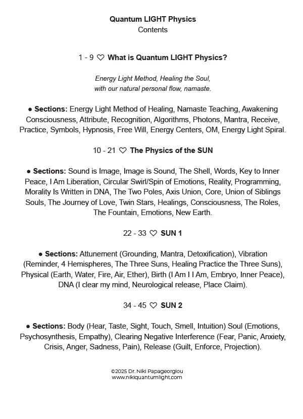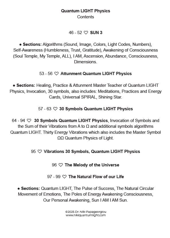 This course is the foundation of Quantum LIGHT — where physics meets consciousness. You will learn how light, sound, geometry, and symbols merge into one living equation of creation. Through the Greek alphabet, mantras, sacred geometry, and original Quantum LIGHT codes, you will practice the science of resonance that shapes both the universe and the human being.